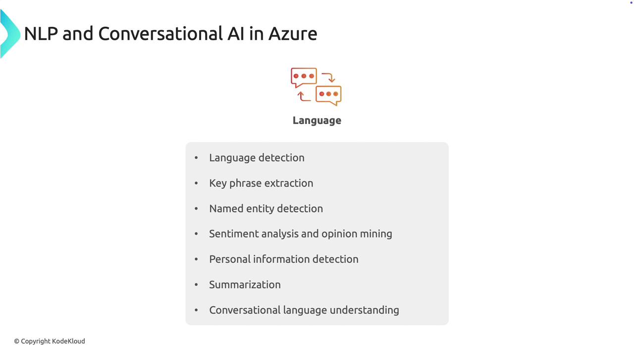 Azure's Language Services enable applications to understand and process text effectively. Key capabilities include: