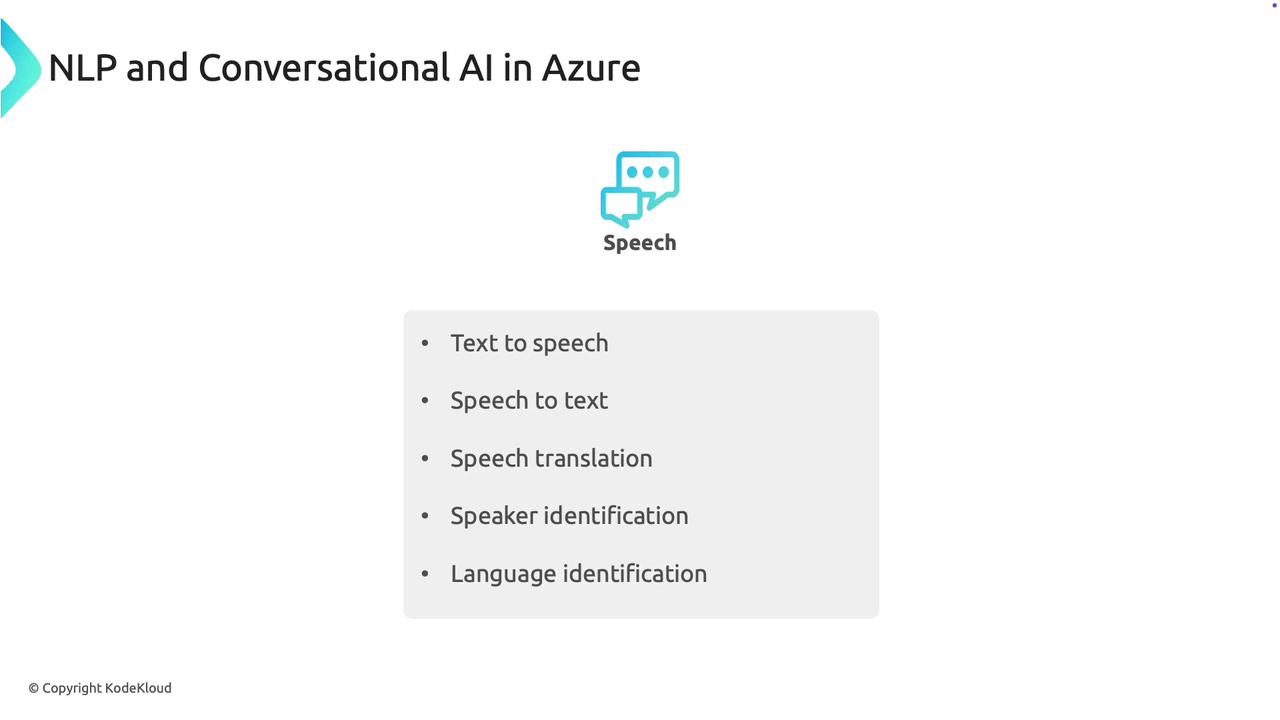 Azure’s Speech Services provide extensive capabilities to work with spoken language. These services include: