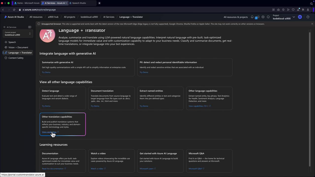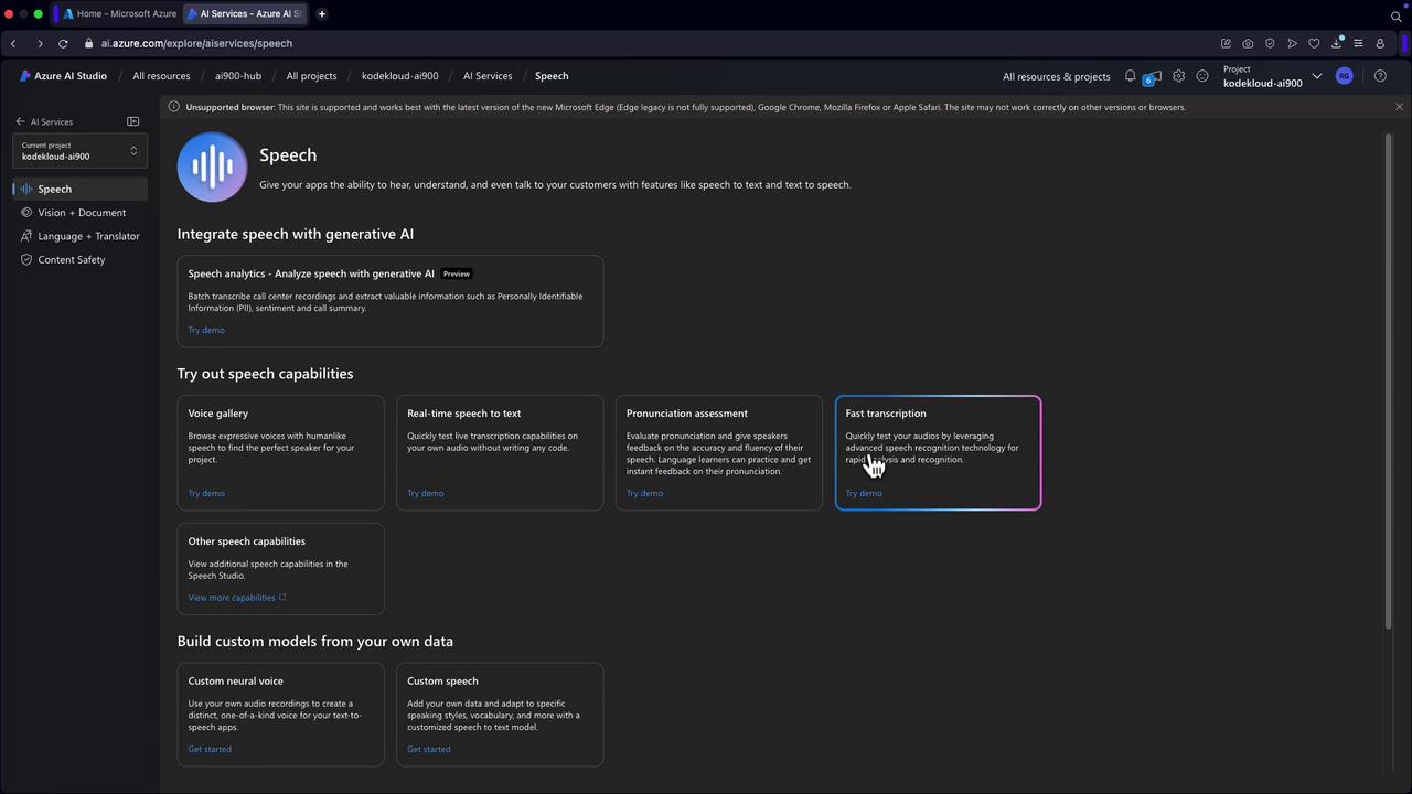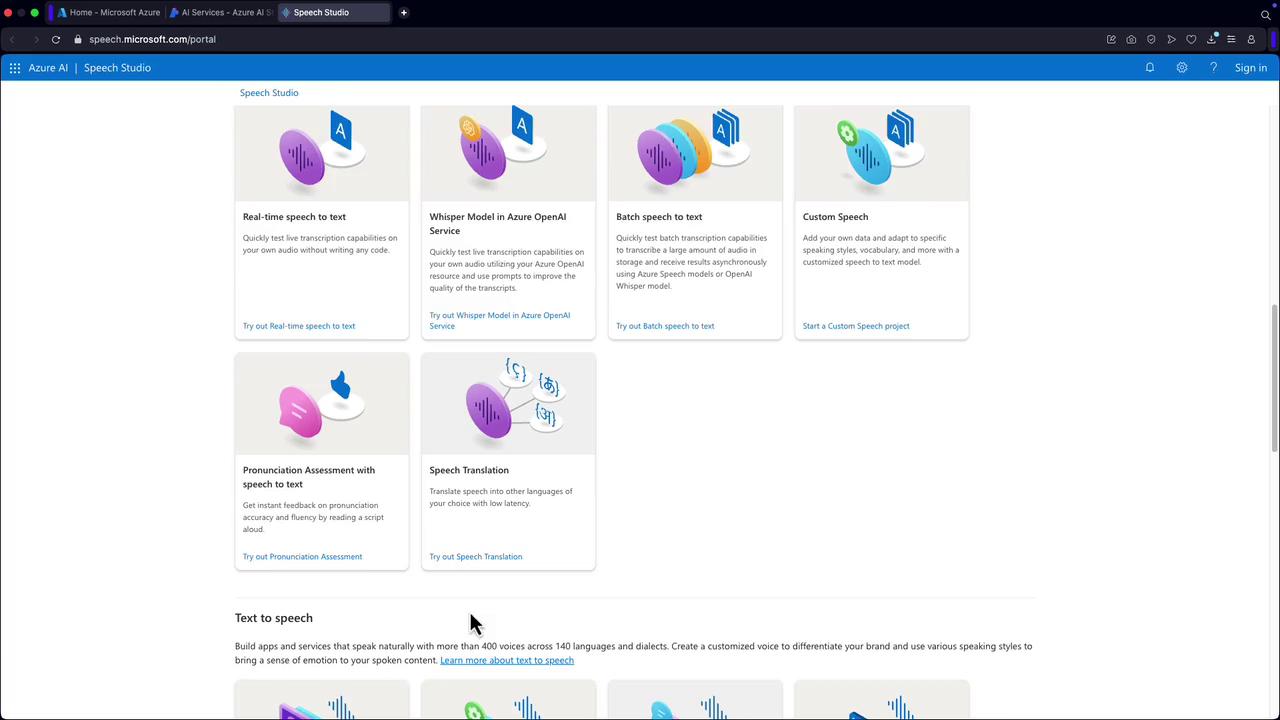 Now that you have an overview of these capabilities, let’s dive into Azure AI Studio to put these services into practice.