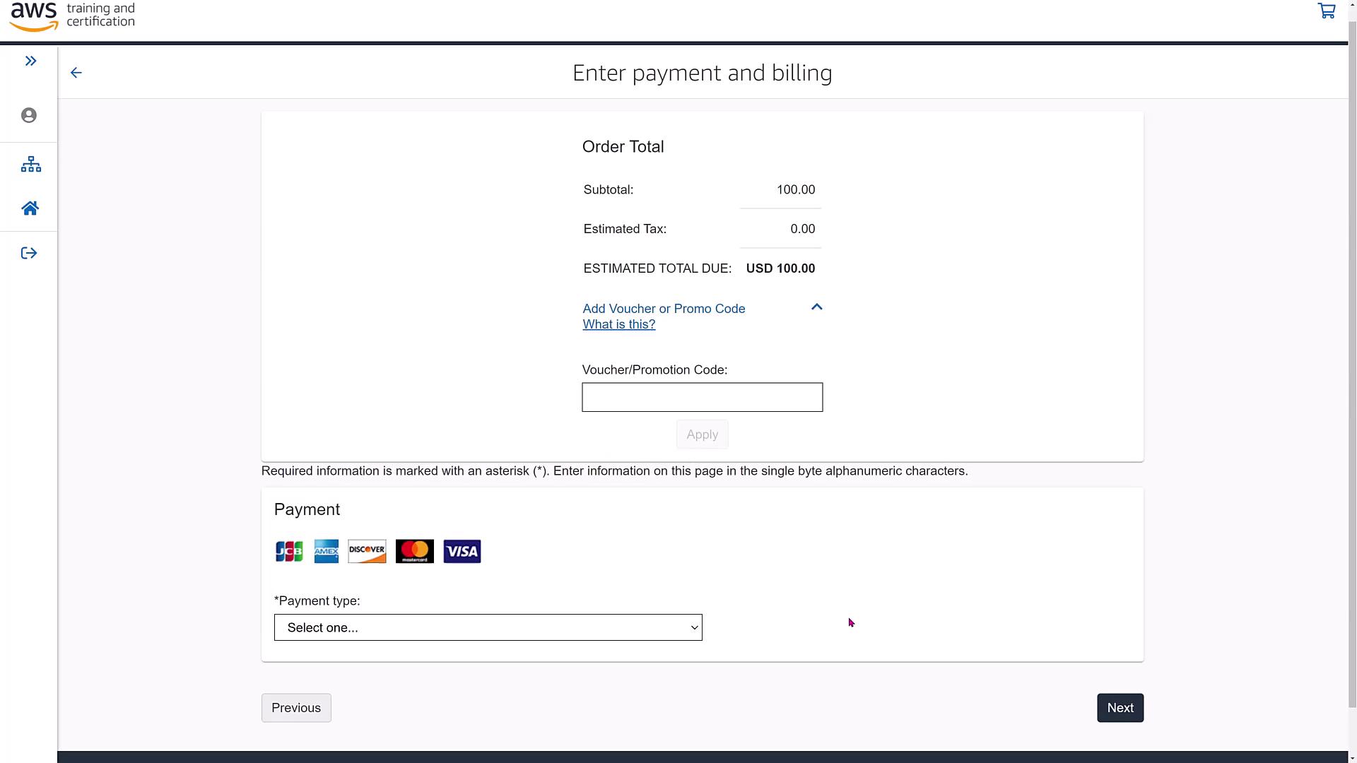 After choosing your preferred slot, proceed to book the appointment. The appointment details, including the exam start time, check-in time, and exam fee (typically $100), will be confirmed. If you have an AWS discount coupon, visit the benefits section on your certification page to apply it at checkout.