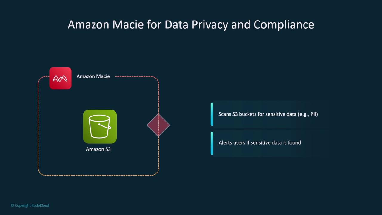 For robust data privacy, especially when handling sensitive information, use Amazon Macie to scan for PII in your S3 buckets. Configure AWS Config to trigger additional preventative actions—like locking a bucket when PII is detected—ensuring continuous compliance and data protection.
