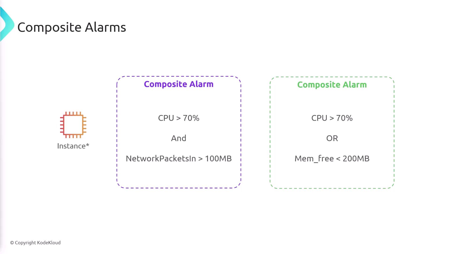 One of the most powerful features of CloudWatch is its capability to monitor multiple metrics with a single alarm, often referred to as composite alarms. You can configure composite alarms using both AND and OR conditions, depending on your monitoring requirements.
