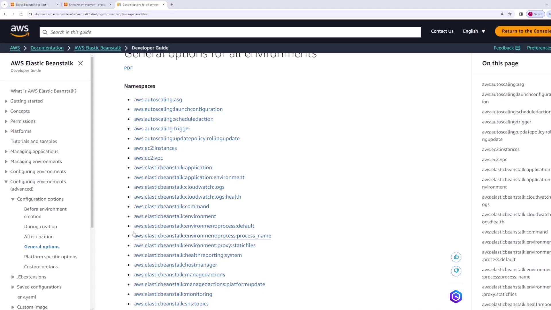 In this lesson, we demonstrate how to modify your Elastic Beanstalk environment configuration using the EB extensions folder in your application's source code. By leveraging EB extensions, you can configure nearly every option available through the AWS CLI or the AWS Management Console. For a complete list of configuration options, please refer to the AWS Elastic Beanstalk documentation under "Configuring Environments – Advanced Configuration Options."