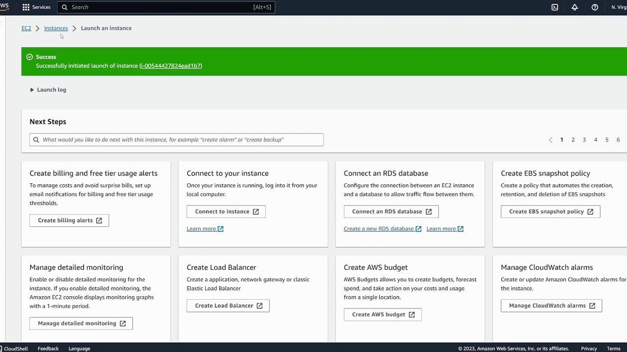 Ensure that the auto-assign public IP option is enabled to allow future connectivity. After launching, navigate to the Instances tab.