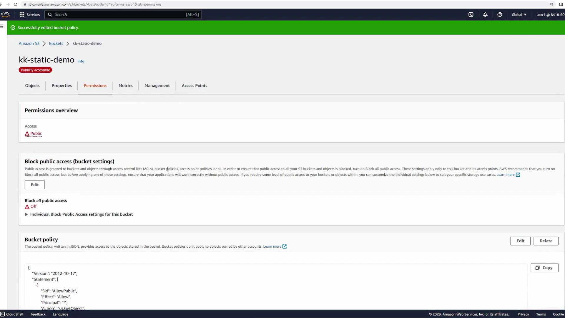 Before your website is fully accessible, you'll need to update bucket permissions to allow public access.