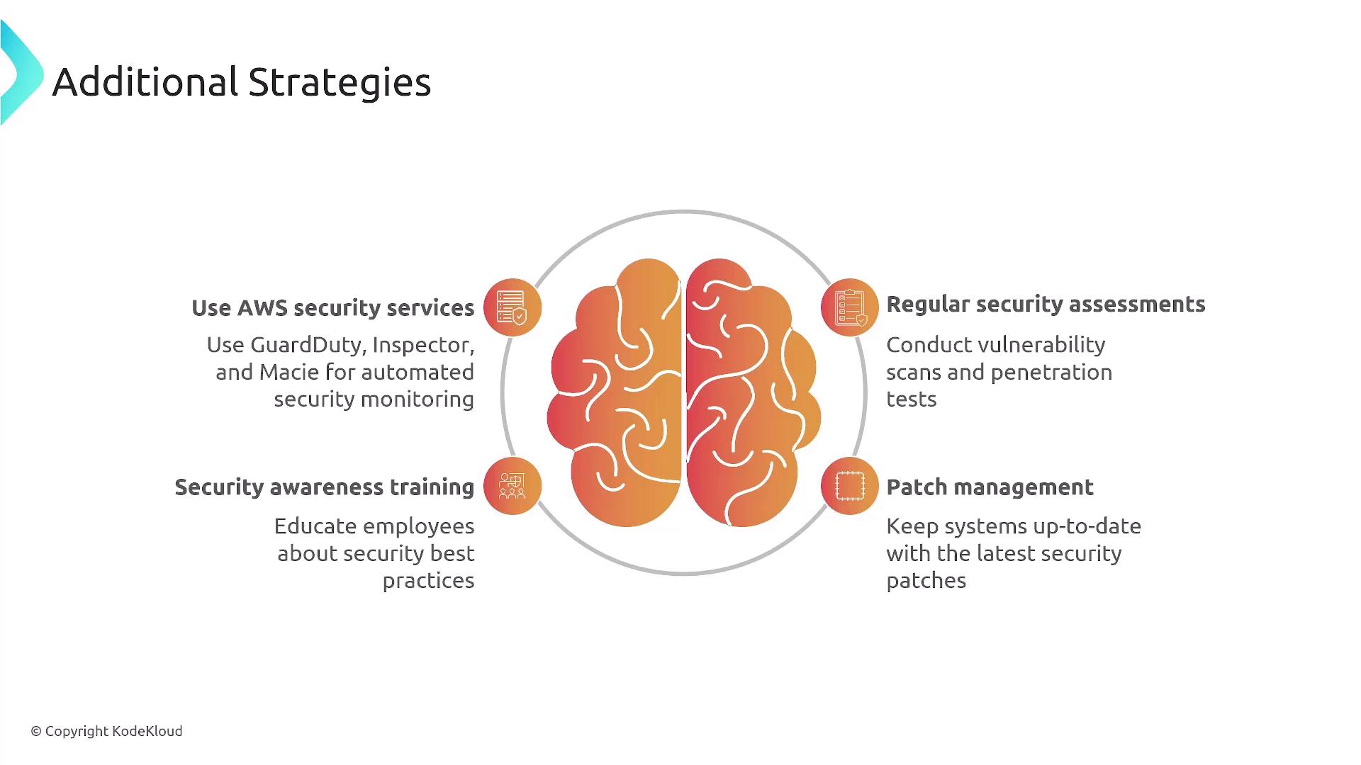 Beyond the core protection mechanisms, AWS supports a wide array of security strategies. Regular vulnerability assessments, patch management, and security awareness training are vital complements to AWS security services. Although AWS does not provide security awareness training, integrating such programs into your overall security plan is highly recommended.