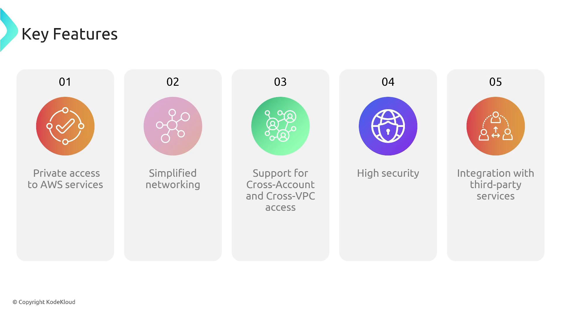 The VPC endpoint not only provides private access to AWS services and third-party providers but also eliminates the need for extra networking components like VPNs or NAT gateways. It supports cross-account and cross-VPC access, which considerably reduces the attack surface by keeping traffic confined to AWS’s secure backbone.