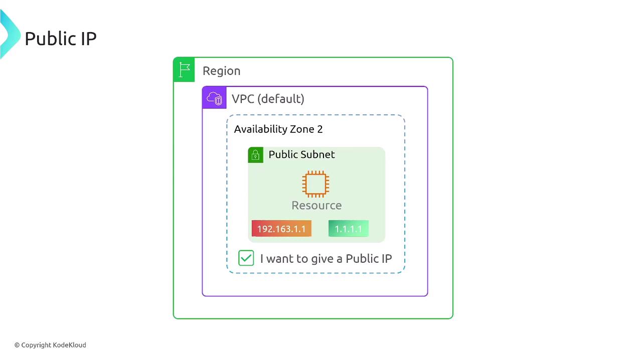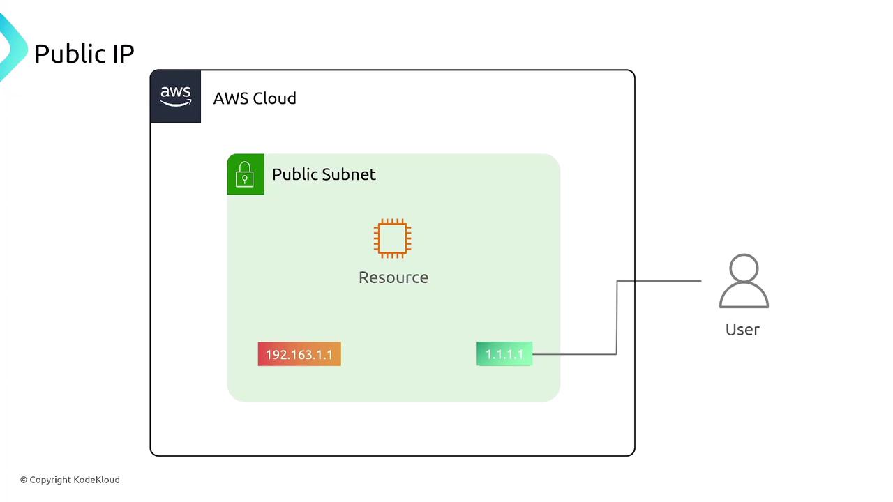 For instance, consider a resource that receives a public IP (e.g., 1.1.1.1) at launch while retaining its private IP. This dual-address setup is common in many web applications: