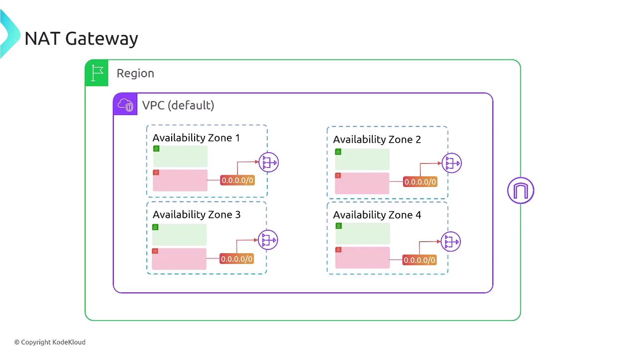 - It is AZ-specific, meaning you should deploy one NAT Gateway per Availability Zone to minimize latency.
