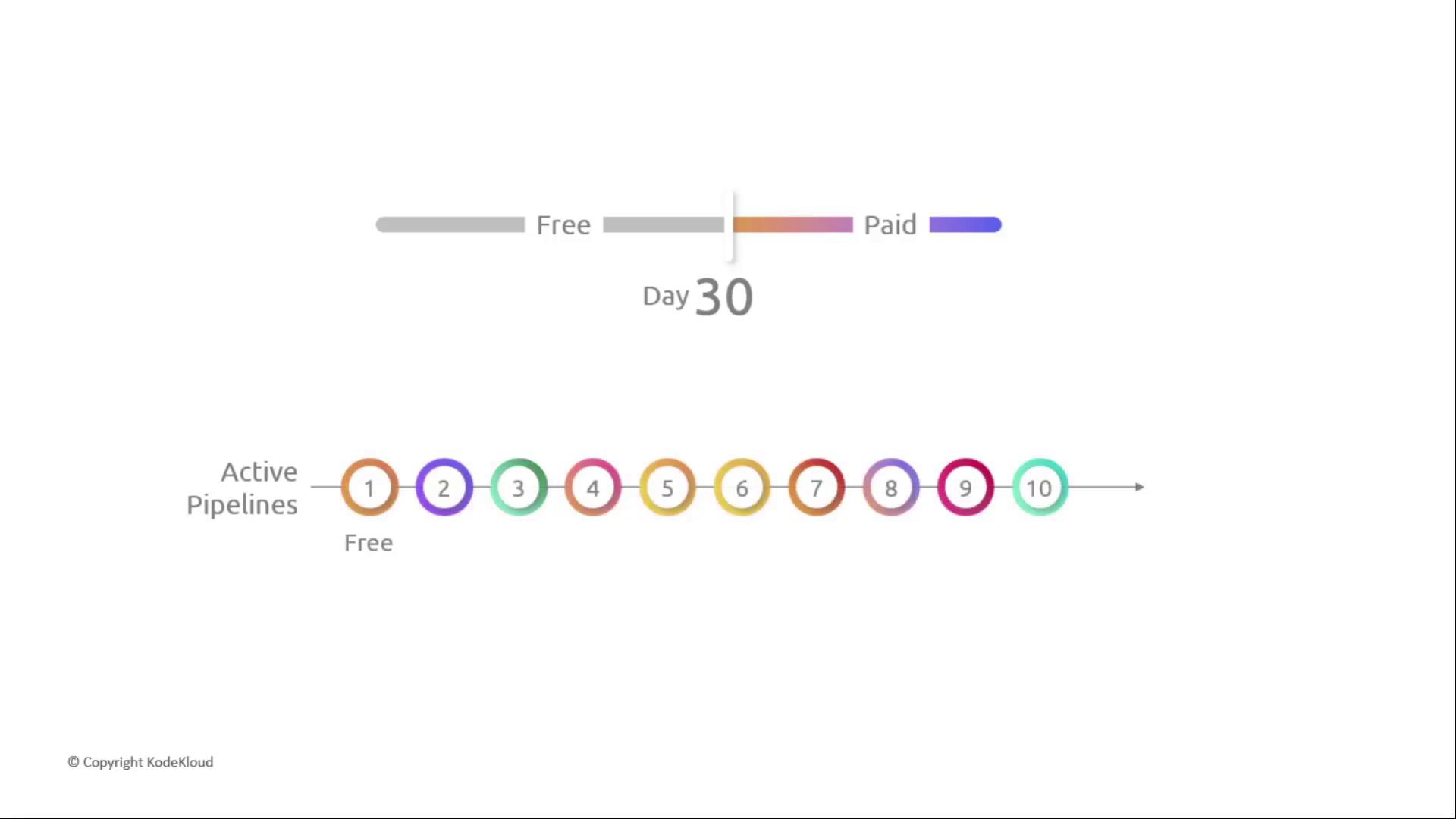 - After 30 days, charges apply only if the pipeline remains active and processes changes