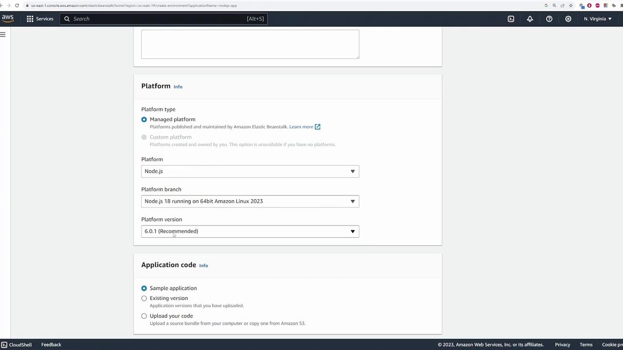 First, log in to the AWS Management Console and search for "Elastic Beanstalk." Under Applications, click Create an Application. Assign a name (e.g., "Node.js app"), optionally add a description and tags, then click Create. This will take you to the application dashboard, where you can manage multiple environments, such as development, staging, or production.