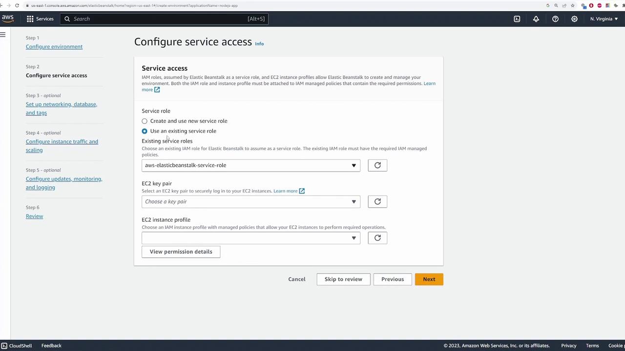 Elastic Beanstalk requires an IAM service role to perform AWS operations. If you do not have an existing role: