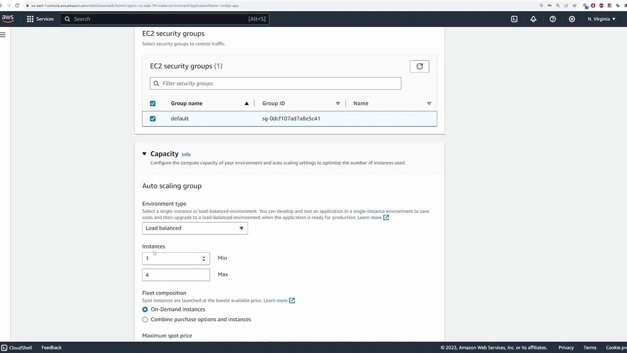 Proceed through the configuration wizard. Elastic Beanstalk automatically populates many settings from presets. For this demo, choose a high availability deployment using multiple EC2 instances behind a load balancer. Even when using presets, you can adjust the settings later.