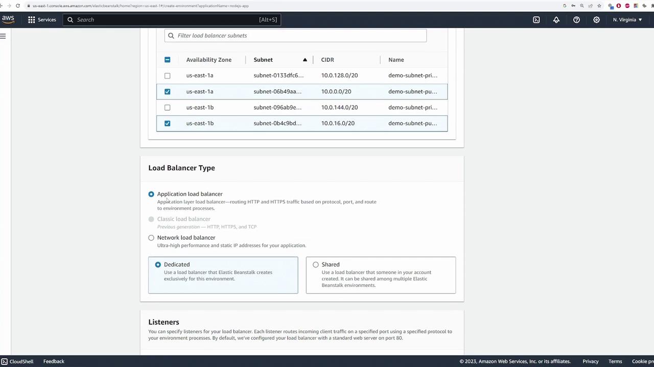 - Choose the Application Load Balancer type with a dedicated load balancer.