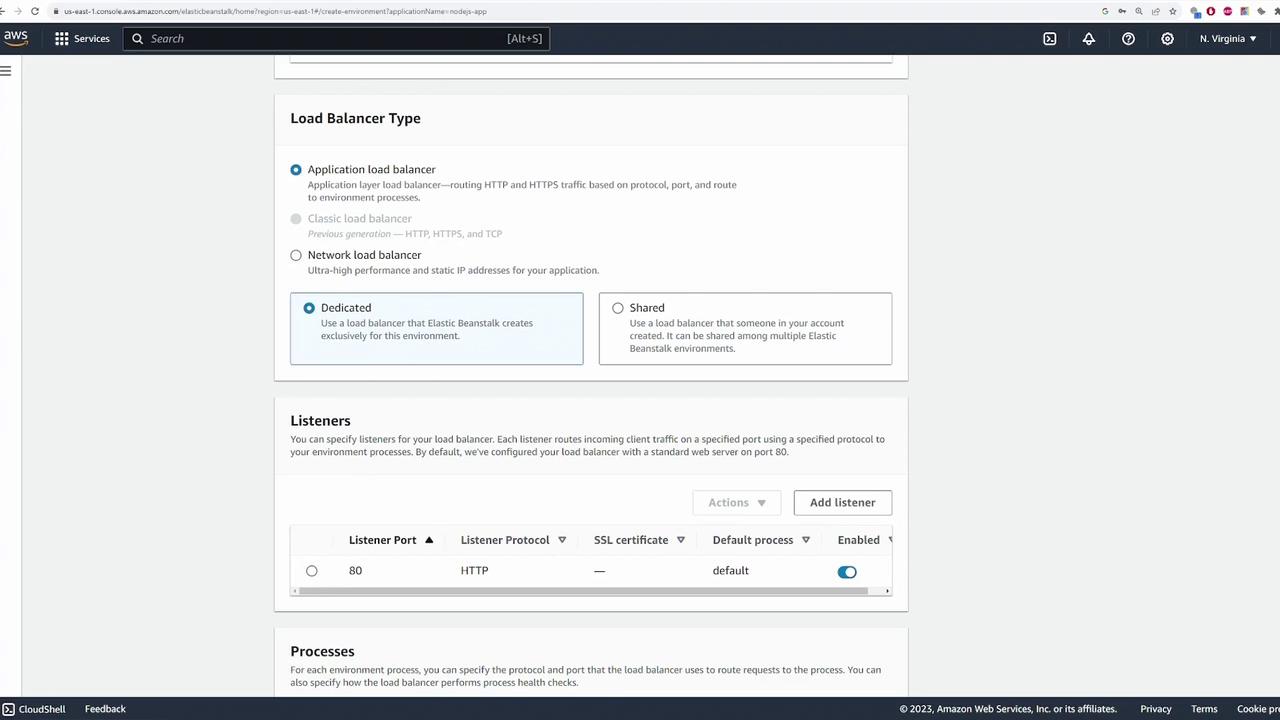 - Since the Node.js application listens on port 3000, modify the listener configuration to forward HTTP traffic accordingly.