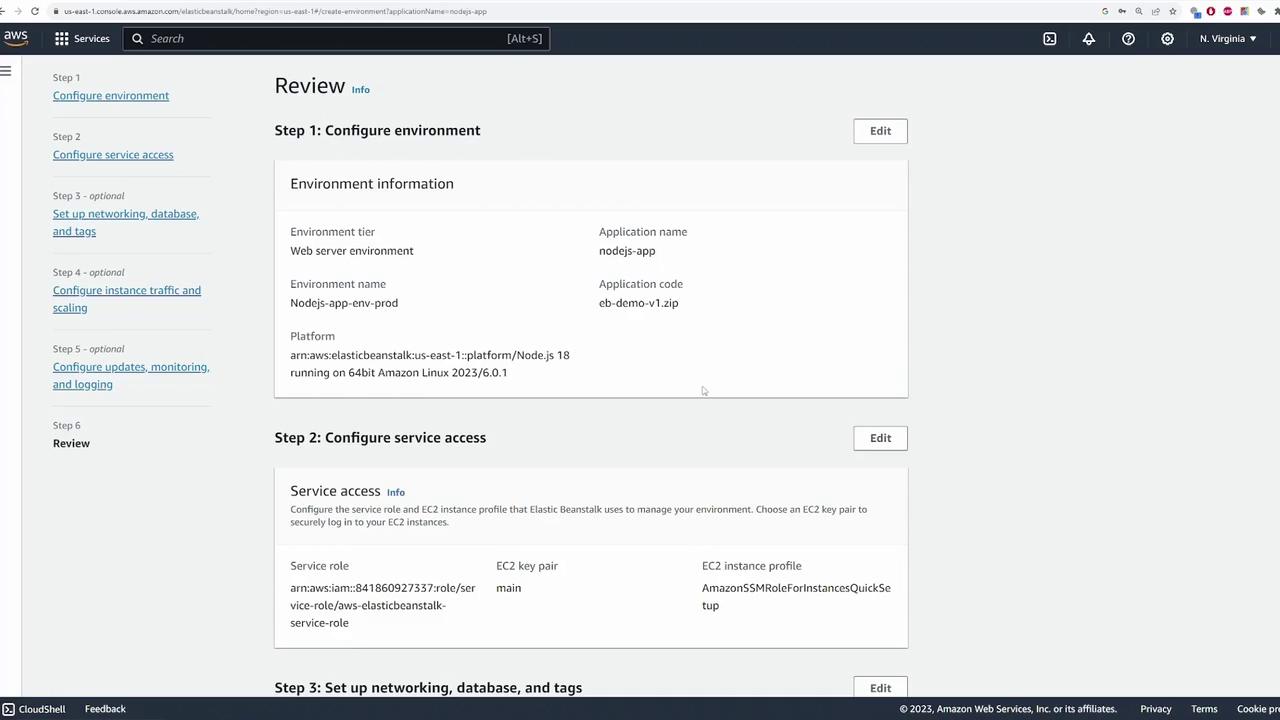 Review your configurations, and once you’re satisfied, submit the settings. Elastic Beanstalk will provision the environment and deploy your application, a process that may take a few minutes.