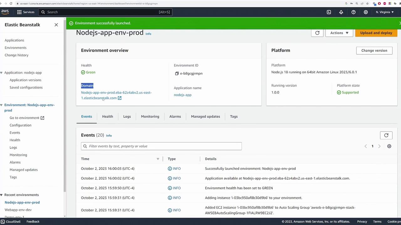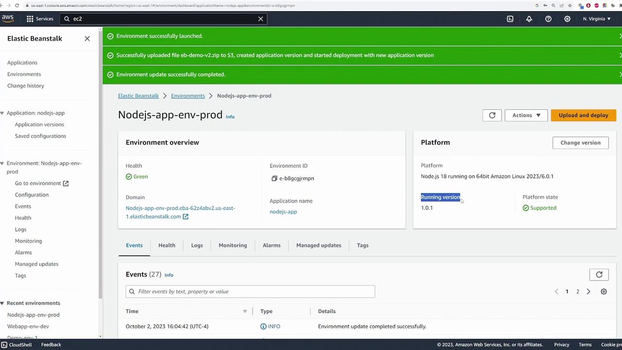 - Navigate back to the Elastic Beanstalk environment dashboard.