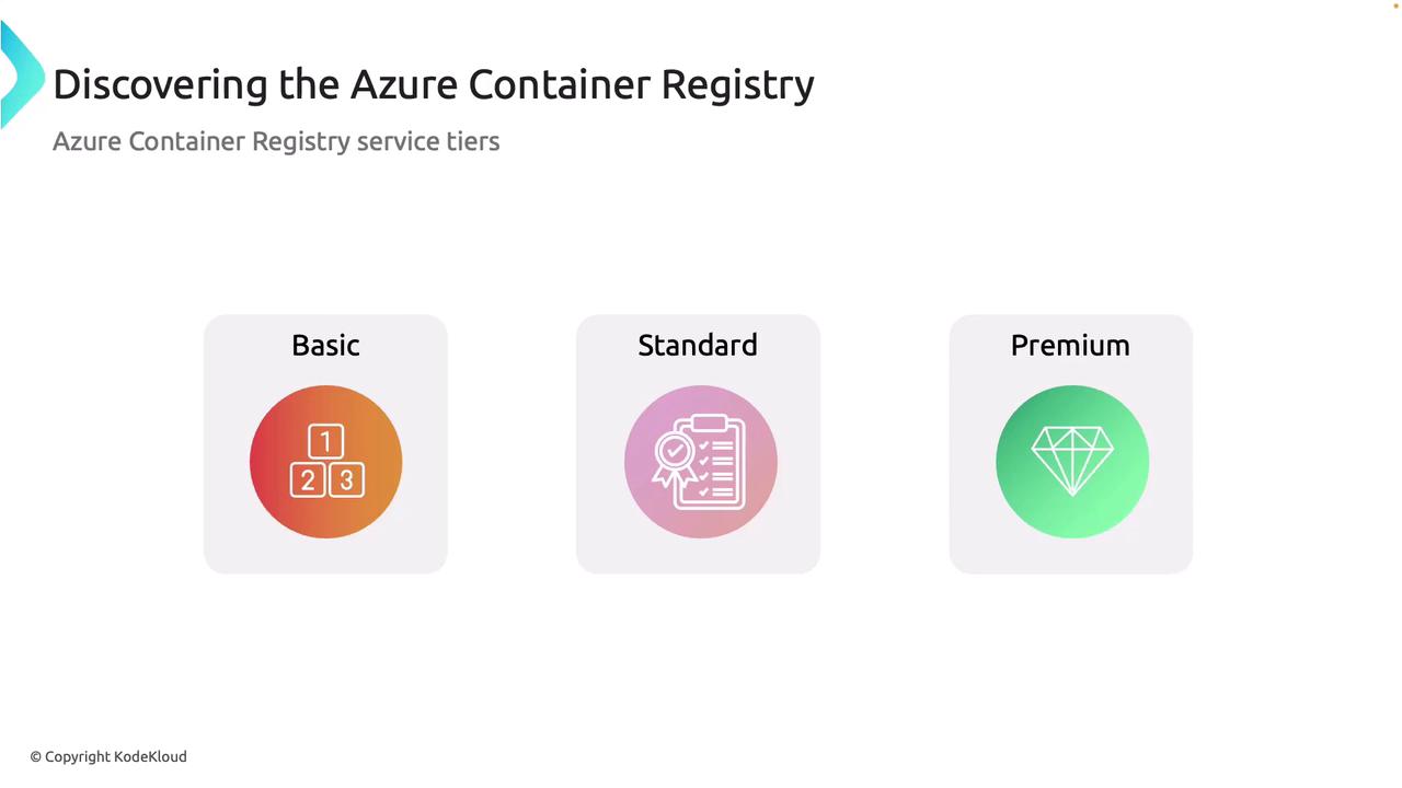 ACR offers multiple service tiers designed to accommodate different needs, ranging from development and testing to high-demand production environments.