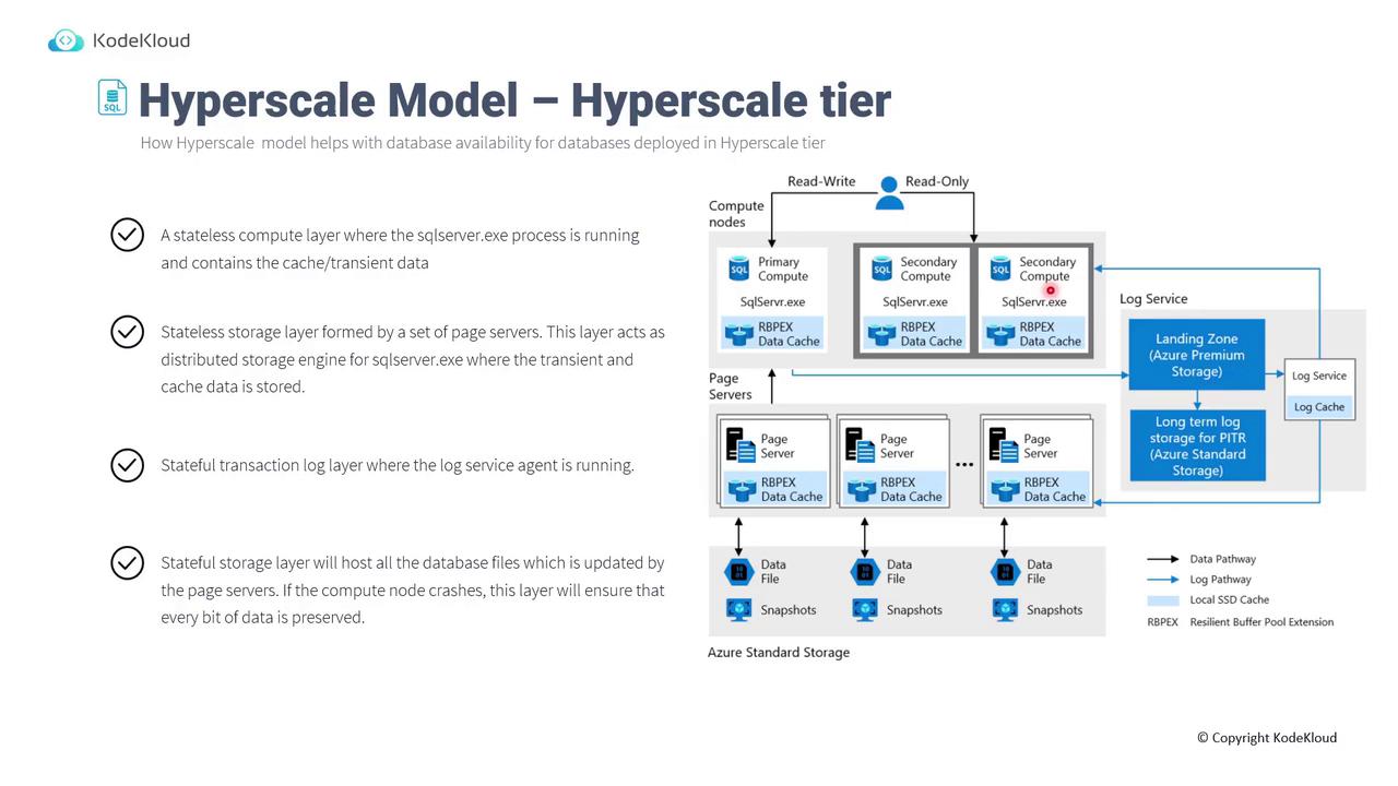 The Hyperscale Model is designed for complex and high business-critical workloads. Its multi-layered approach includes: