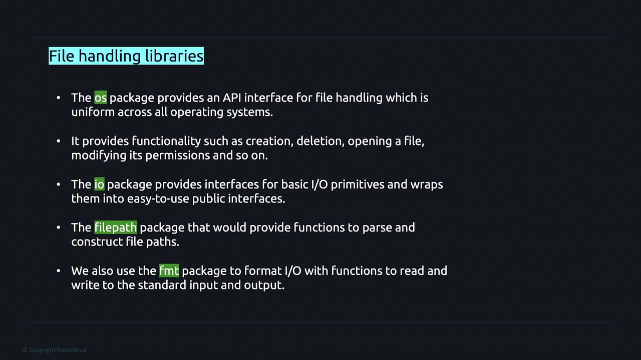 In this article, we covered how to construct file paths, retrieve file metadata, read file contents (both entirely and in chunks), and write or append data to files using Golang. This foundational knowledge is essential for effectively managing files in your applications.