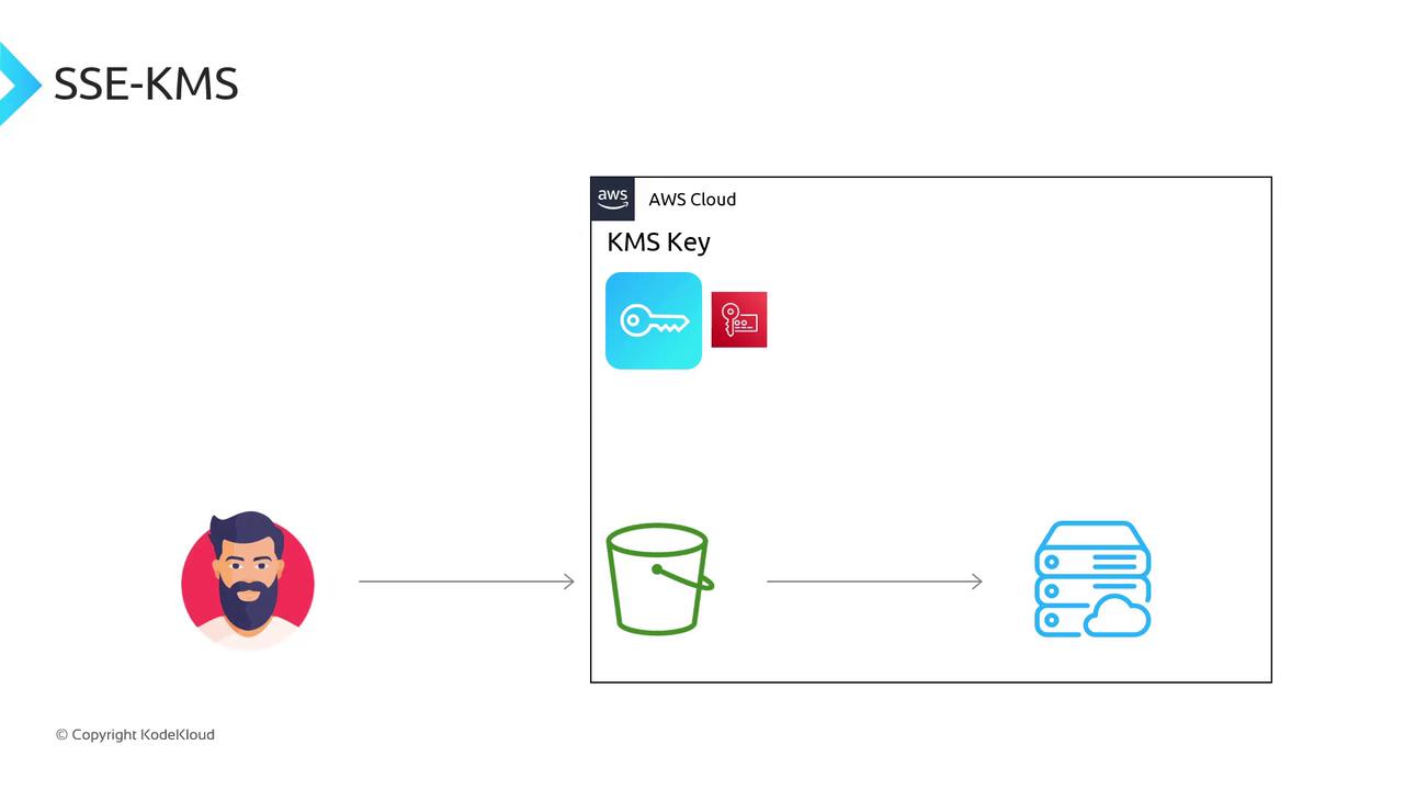 SSE-KMS integrates AWS Key Management Service for advanced control: