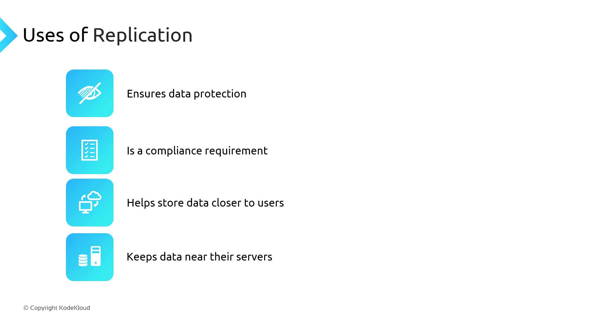 Amazon S3 Replication enables automatic, asynchronous copying of objects from a source bucket to one or more destination buckets. By configuring replication, you can meet compliance mandates, protect against accidental data loss, and serve data with low latency by placing it closer to your users or workloads.