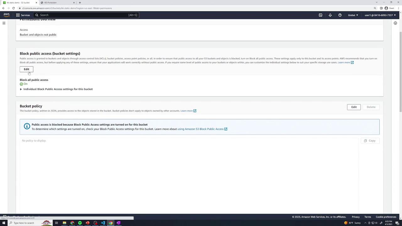 - Go to Permissions → Block public access (bucket settings) → Edit.