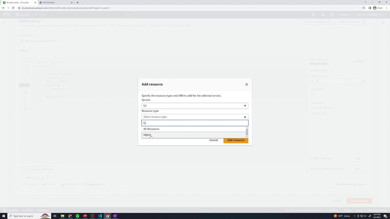 "Resource": ["arn:aws:s3:::kk-static-demo/*"]