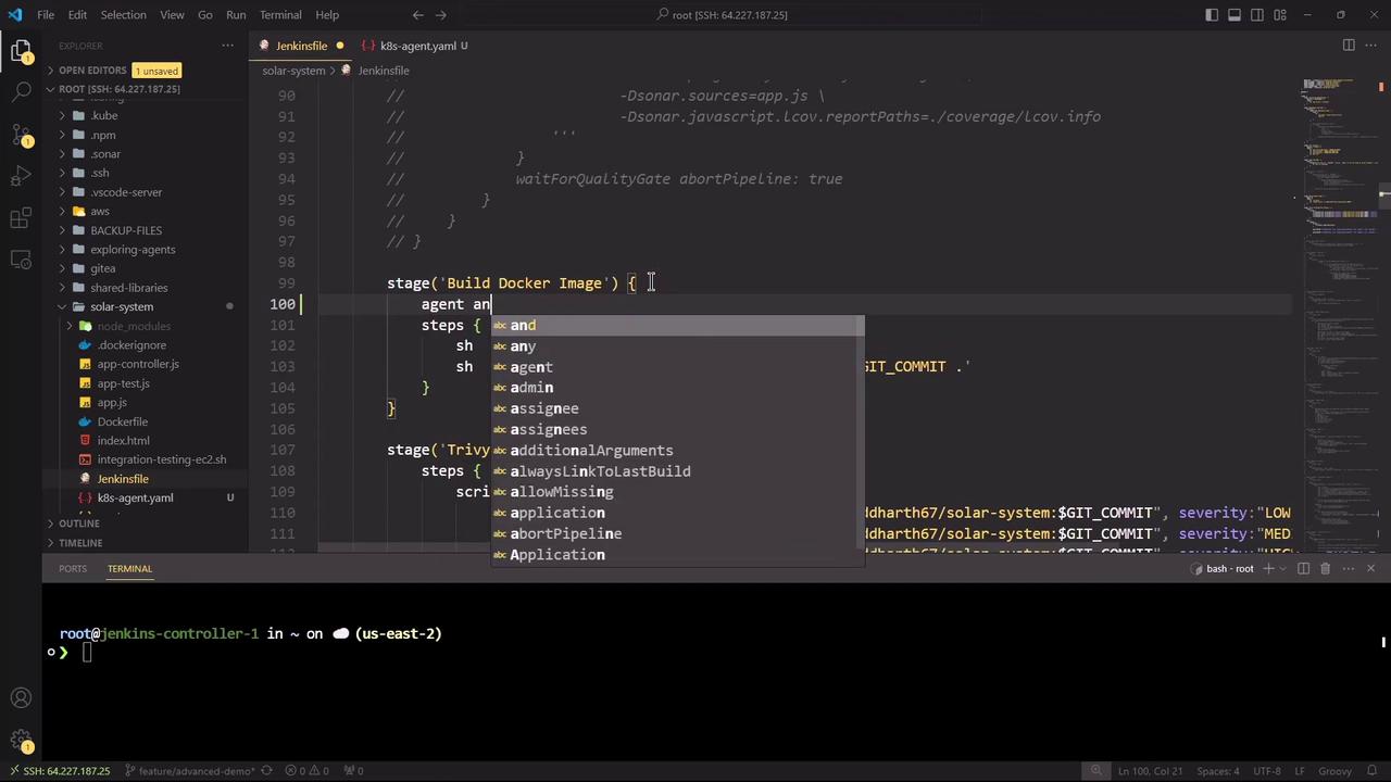 In this guide, we'll transform the existing Solar System Pipeline Jenkinsfile from using agent any to leveraging a Kubernetes agent. By externalizing Pod definitions into a YAML manifest and targeting specific Node.js containers for build stages, we achieve more consistent, scalable CI/CD workflows.