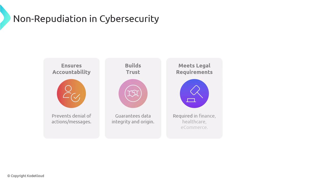 Implementing non-repudiation measures is not only vital for building trust in electronic communications but is often a regulatory necessity in industries like finance, healthcare, and e-commerce. These measures help organizations meet legal standards and facilitate dispute resolution.