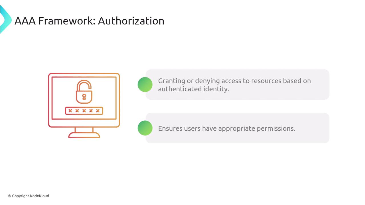 After establishing the importance of non-repudiation, let’s turn our attention to the AAA framework. This framework is fundamental in securing access to resources, managing permissions, and tracking user activities to ensure a strong security posture.