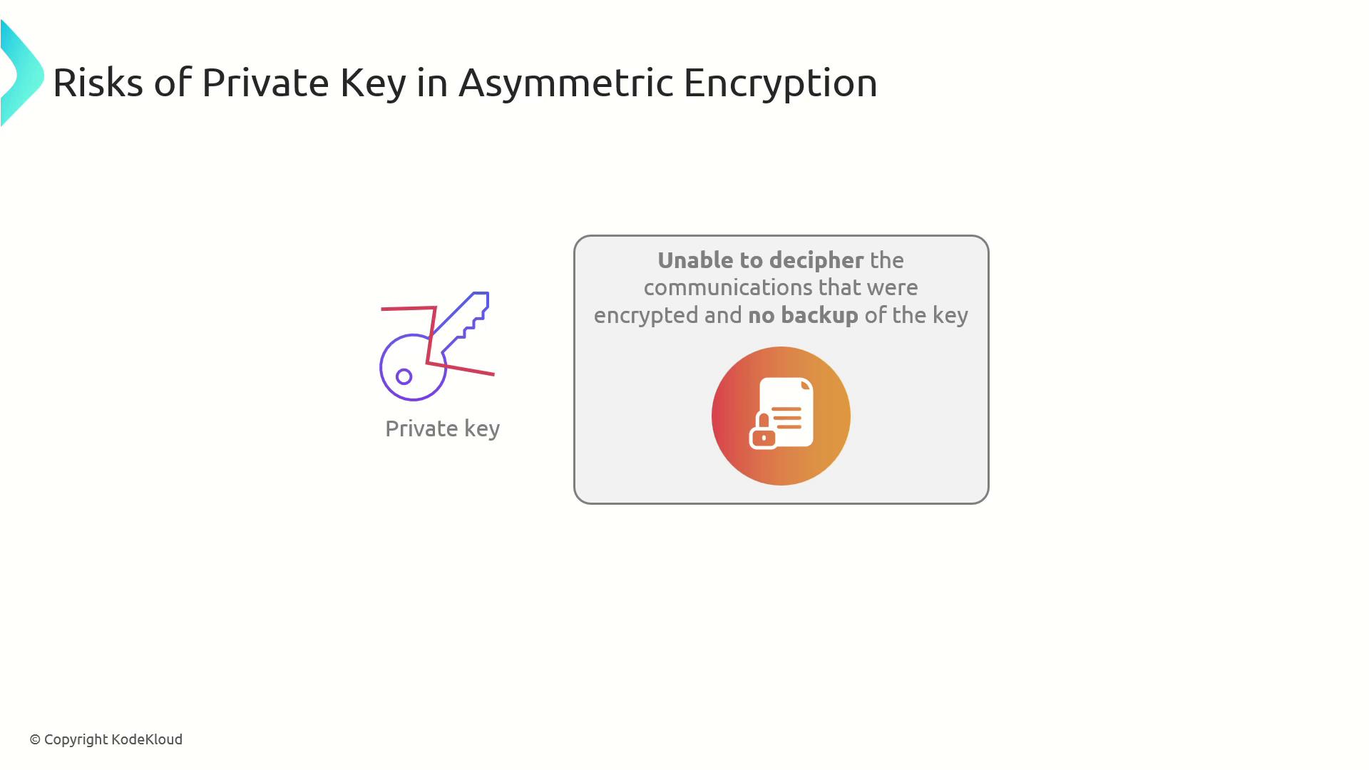 Managing private keys is critical. If a private key is lost or damaged without a backup, any data encrypted with its associated public key becomes inaccessible.