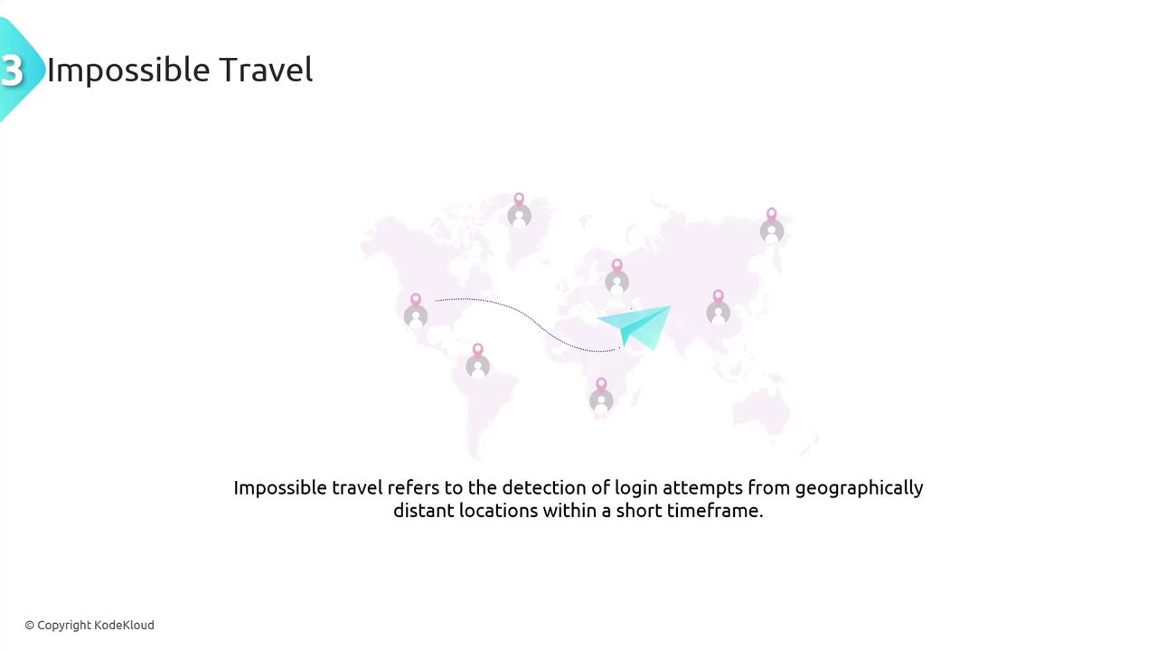 Impossible travel occurs when login attempts are made from geographically distant locations within a timeframe too short for physical travel to be feasible. For instance, a login from London followed by another from Tokyo within minutes is highly suspicious and may suggest a compromised account.
