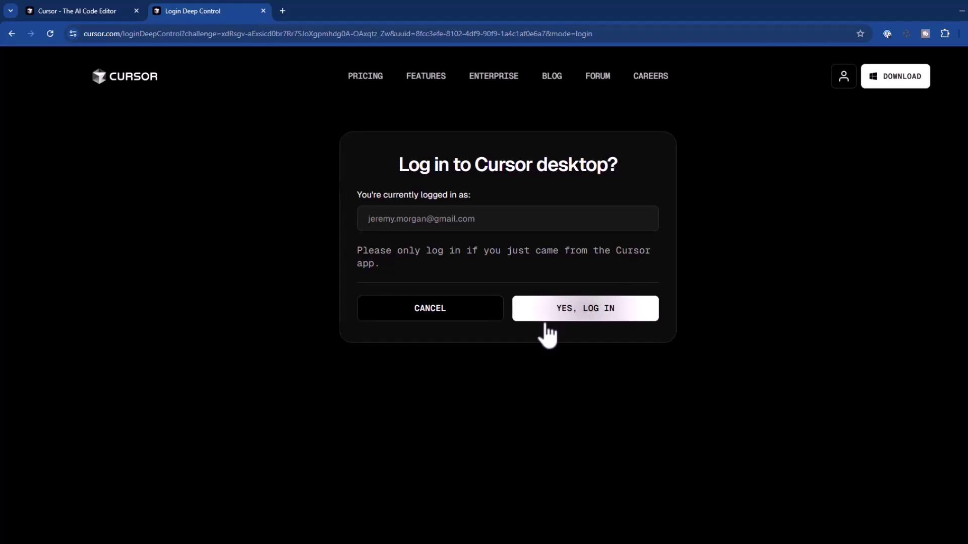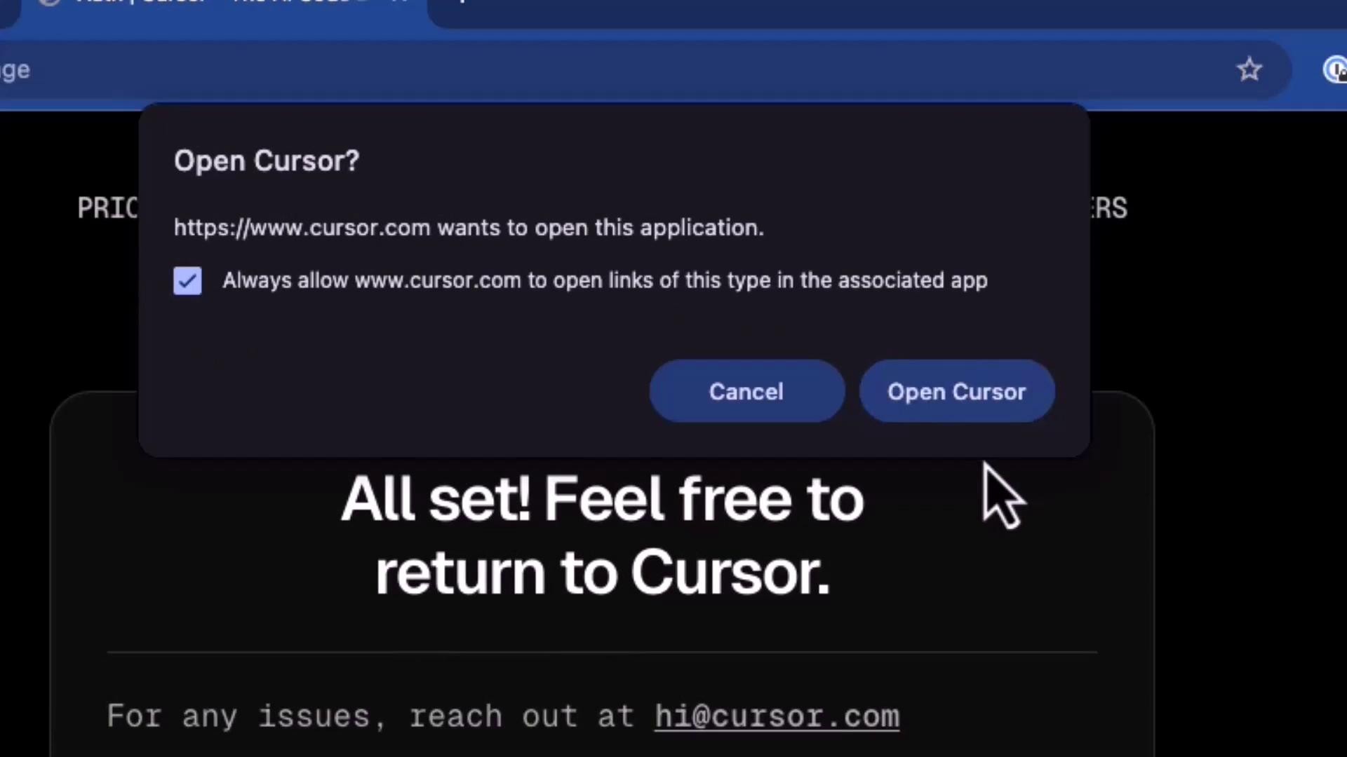 Open Cursor; macOS will prompt you to confirm launching an app downloaded from the internet.