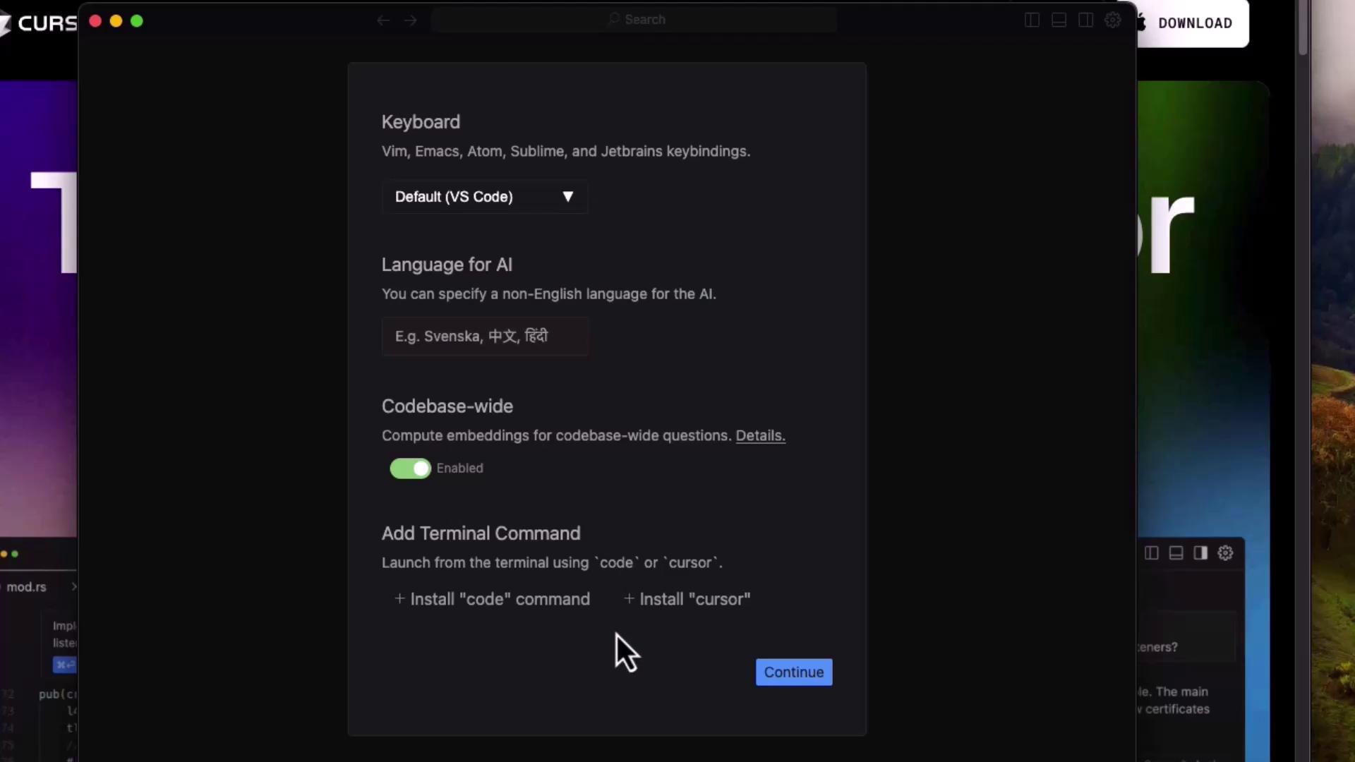 On first launch, configure your preferences and import VS Code extensions just like on macOS.