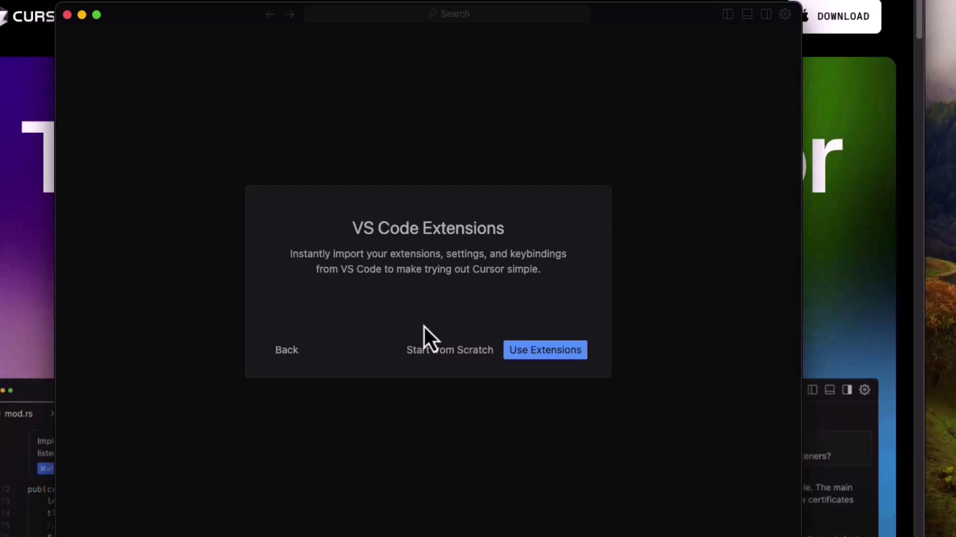 Choose whether to import your existing VS Code extensions, settings, & keybindings or start fresh.