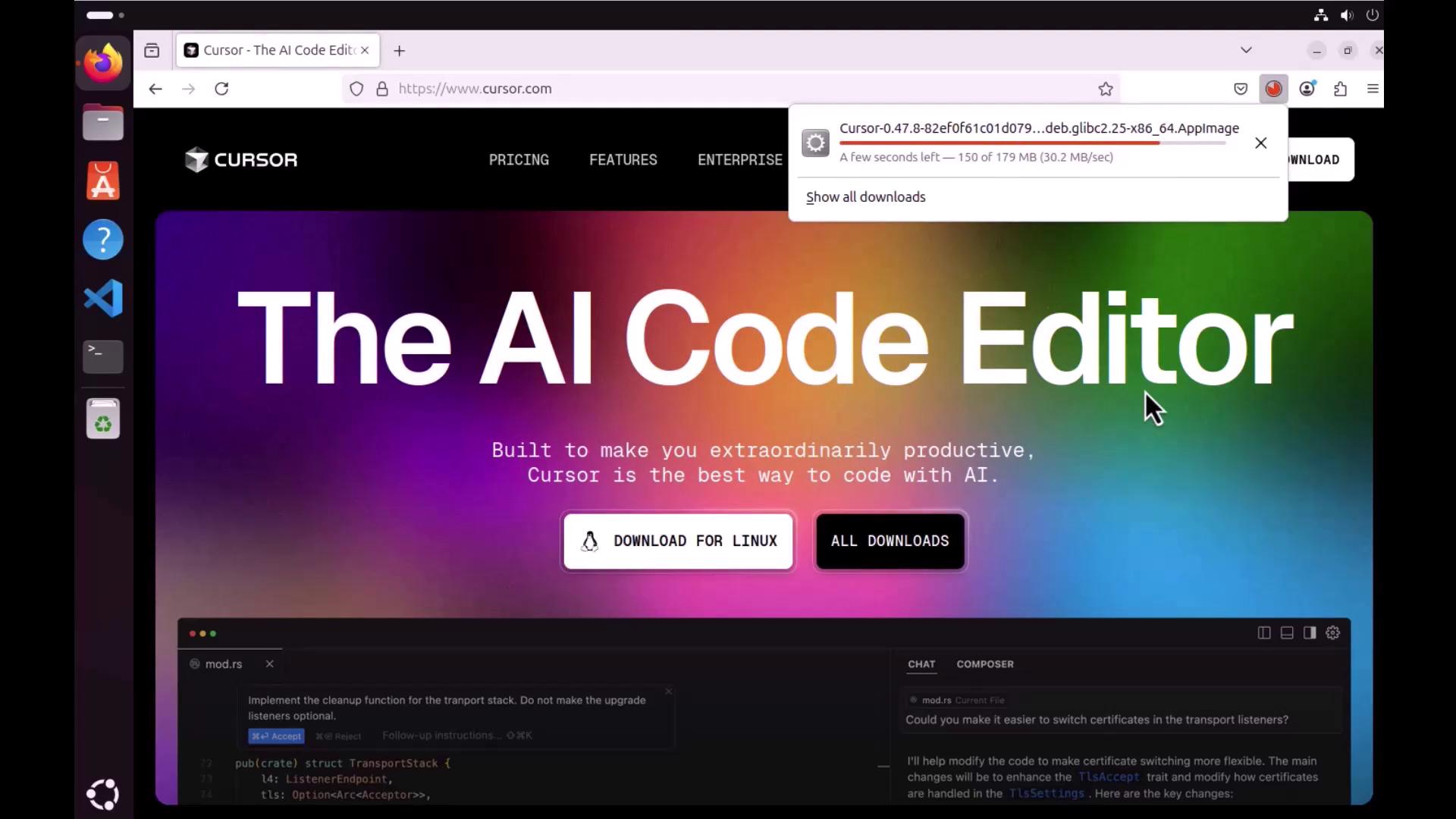 Download the AppImage from cursor.com and place it in your Downloads or Apps directory.
