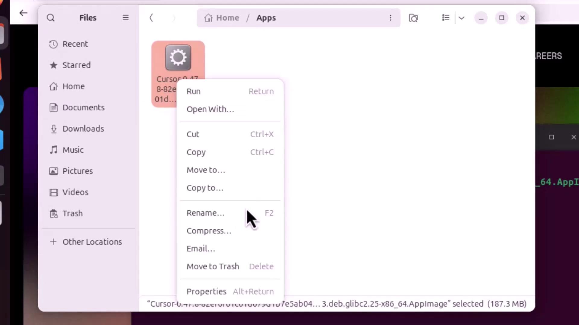 cd ~/Apps chmod +x Cursor.AppImage ./Cursor.AppImage