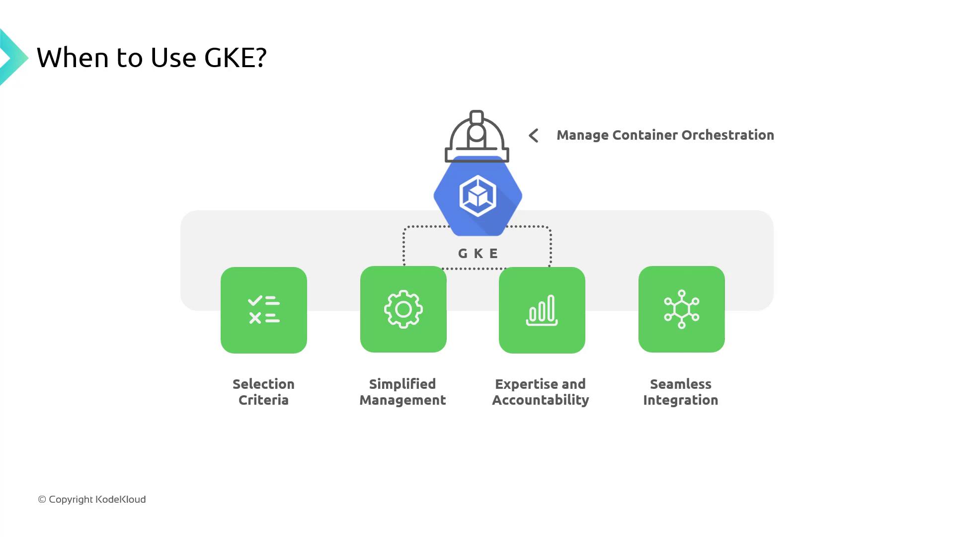 GKE is the ideal choice when you want the power of Kubernetes without the overhead of managing control planes, node lifecycles, and production-grade integrations.