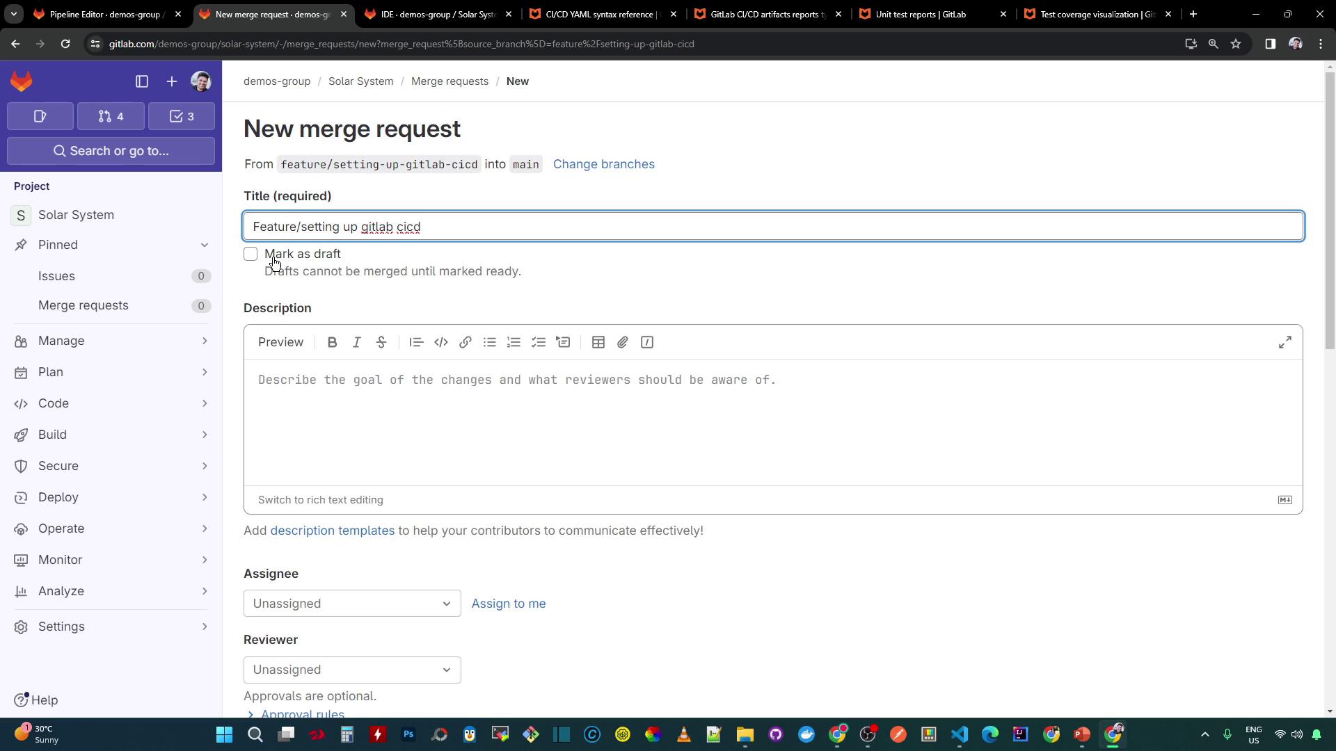 Push your feature branch and open an MR titled Exploring GitLab CI/CD: