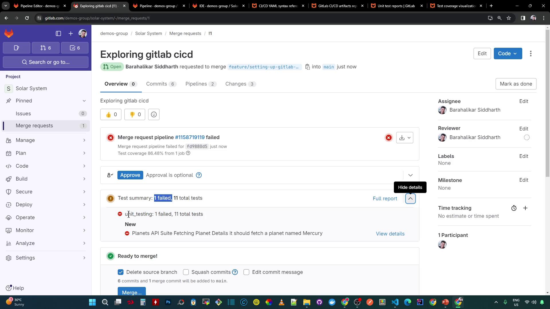 By using GitLab CI’s reports keyword, you surface test results and coverage details directly within Merge Requests. This streamlines code reviews, enabling teams to catch failures and coverage gaps before merging.