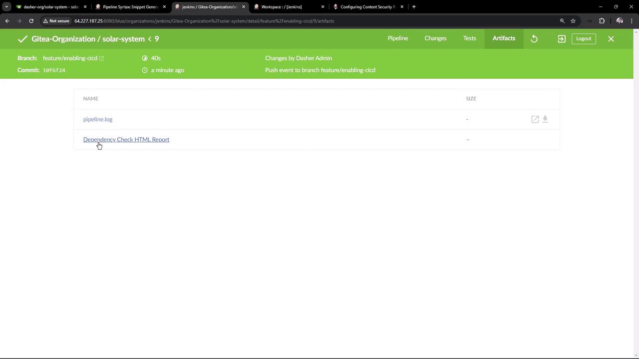 Following this workflow ensures that vulnerabilities are addressed promptly and that comprehensive reporting is available directly within the Jenkins UI, enhancing the overall security posture and efficiency of your development pipeline.
