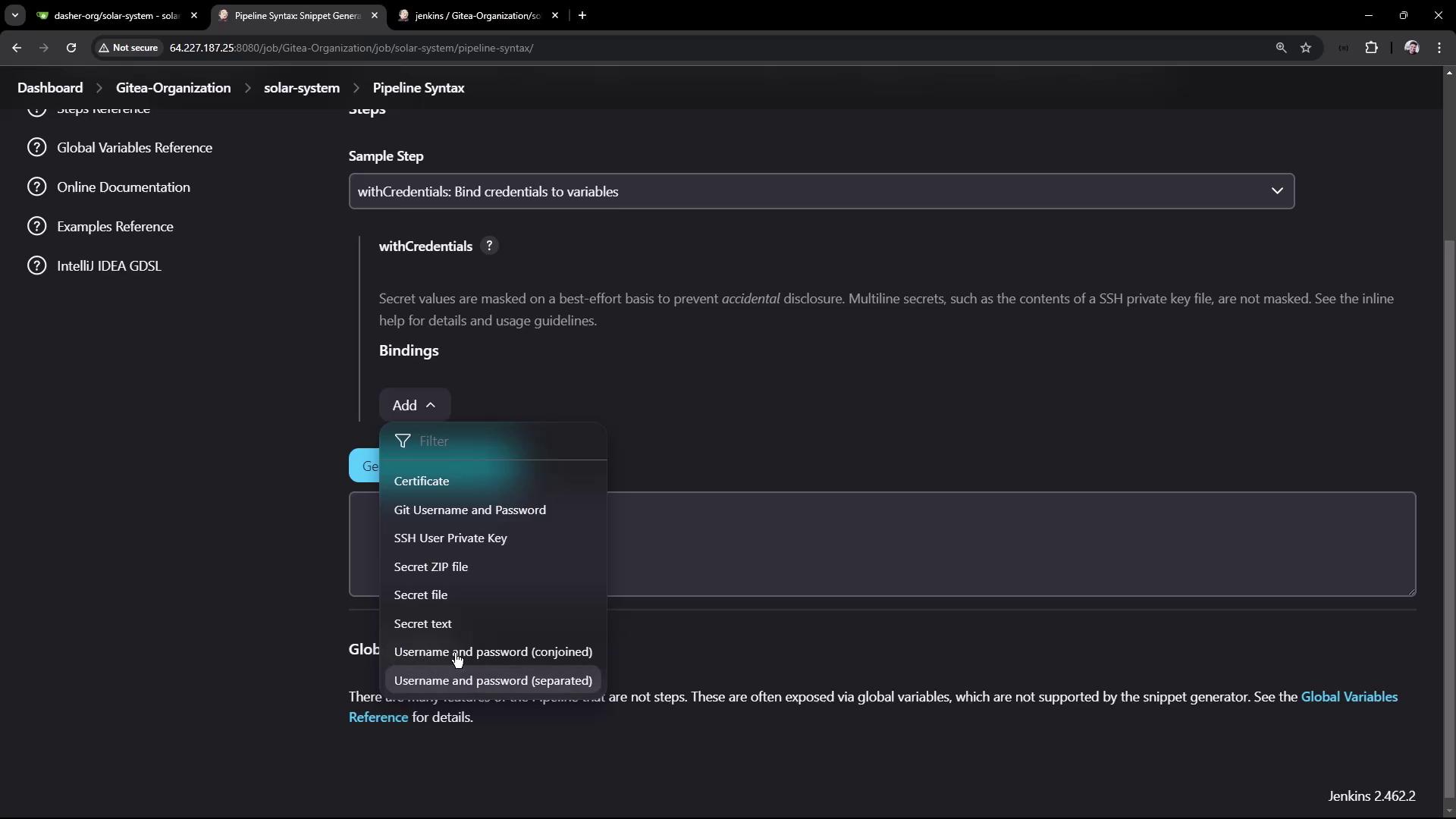 withCredentials([usernamePassword(