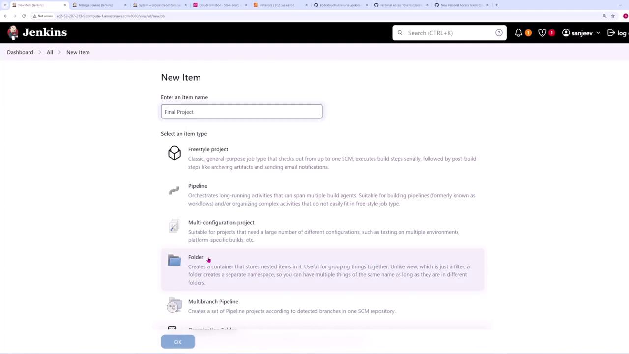 - Select Multibranch Pipeline as the project type. This option provides features such as running the pipeline on multiple branches and triggering builds for pull requests.