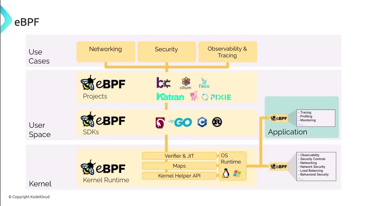 eBPF (Extended Berkeley Packet Filter) is a Linux kernel technology that allows sandboxed programs to run safely in kernel space. Developers can inject custom logic at runtime—without adding kernel modules or changing kernel source code.