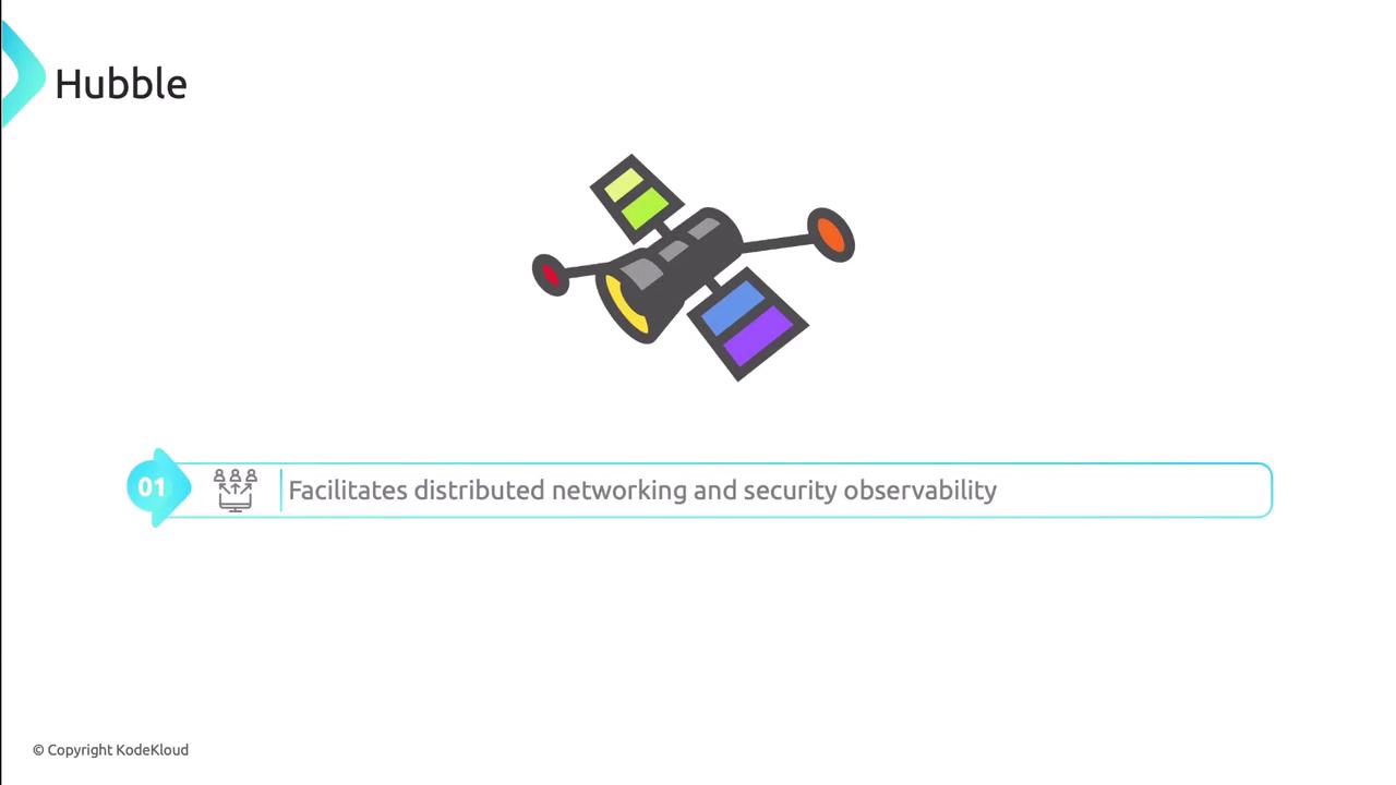 Hubble is a distributed networking and security observability platform built on Cilium and eBPF. It provides visibility into: