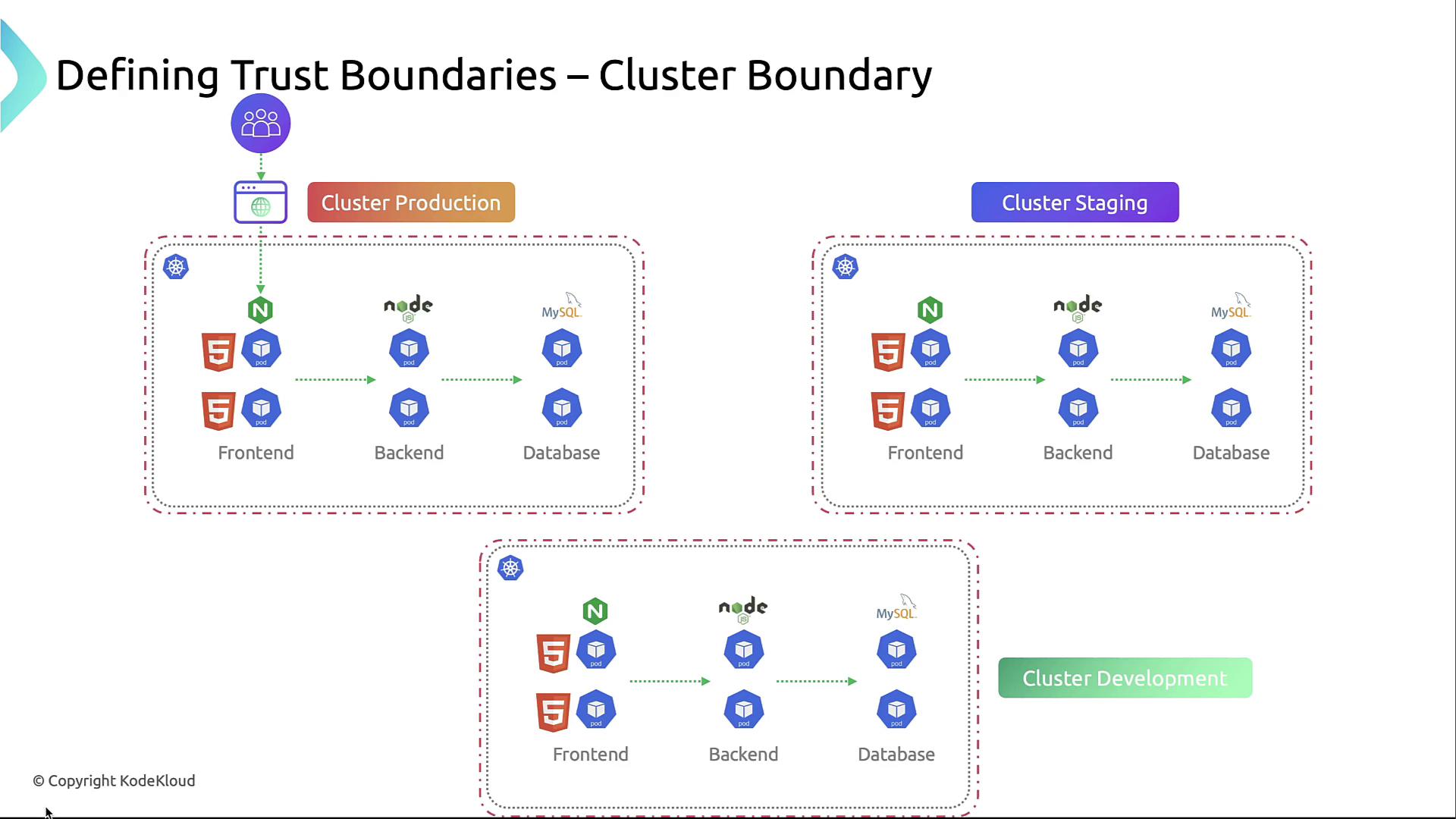 To prevent lateral movement and data exfiltration, segment your cluster into distinct trust zones.