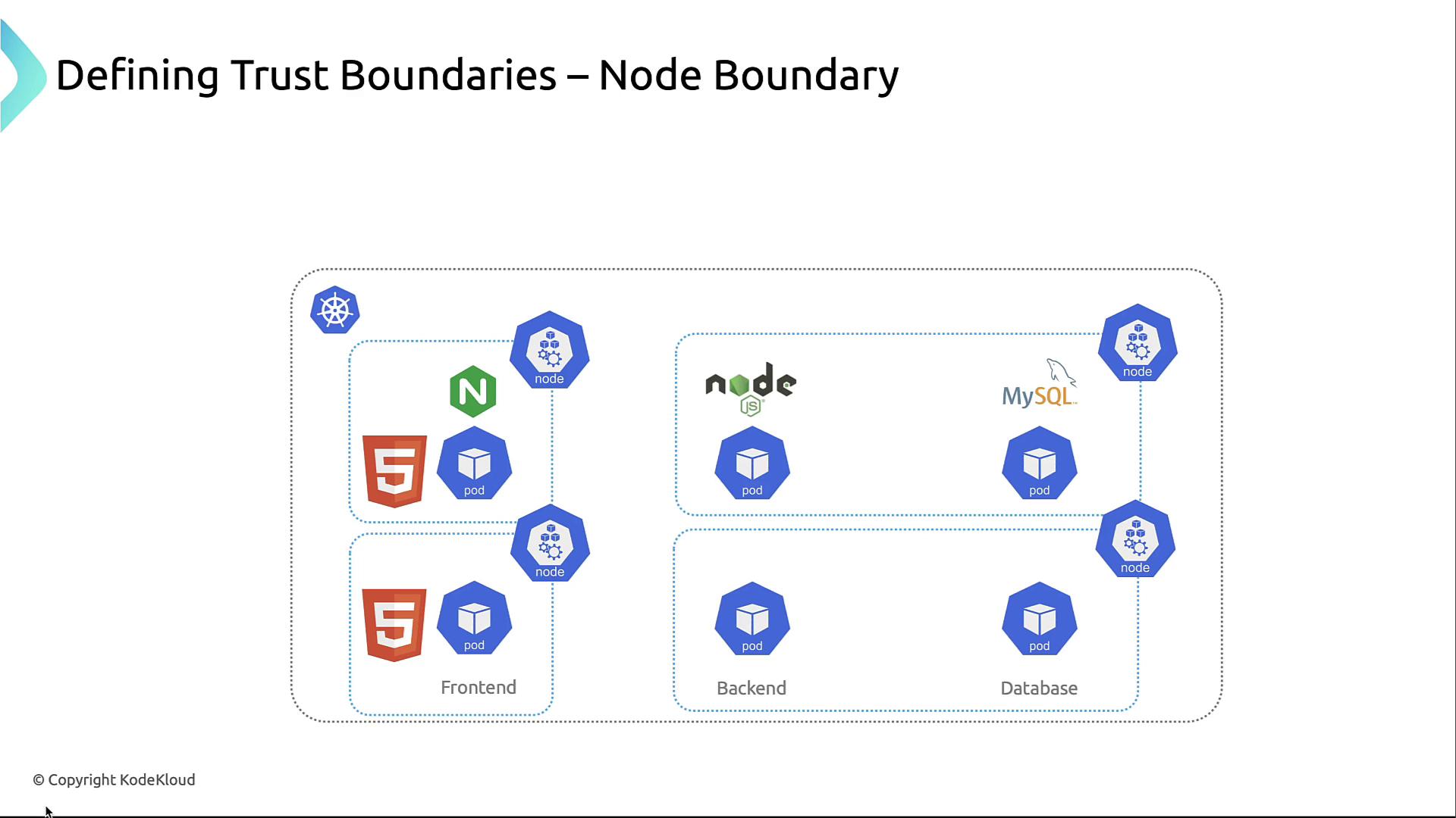 Each node is a compute-level boundary. Harden kubelet, restrict SSH, and apply host-based firewalls so a compromised node doesn’t expose others.