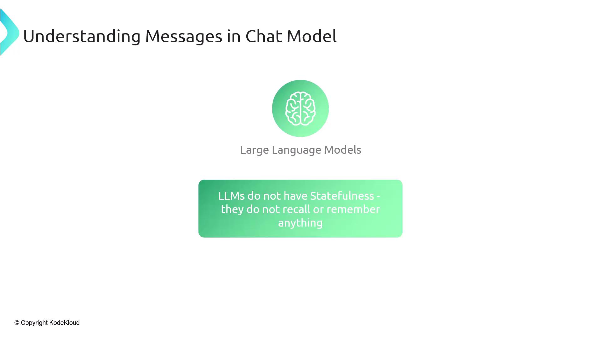 Large language models (LLMs) do not maintain memory across separate sessions. This means every new conversation must include its system message to preserve context.