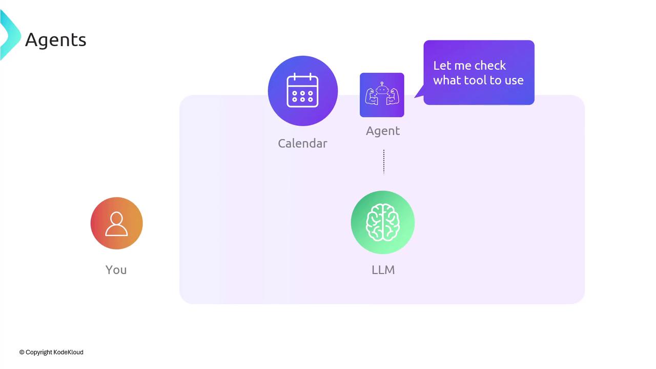 Agents are the most advanced LangChain components, combining the comprehension and reasoning power of large language models (LLMs) with external tools to tackle complex tasks. An agent dynamically queries an LLM whenever it needs extra “brain power,” then orchestrates APIs or services to accomplish user objectives.